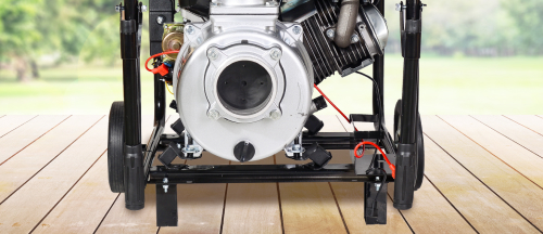 Мотопомпа Huter MPD-100 имеет колеса и удобные ручки для транспортировки. С их помощью можно без усилий перемещать агрегат по любой поверхности. Прочная металлическая рама обеспечивает устойчивость и защищает от механических повреждений. Основные элементы устройства (воздушный фильтр, топливный кран, заливная горловина и т.д.) защищены, но находятся в быстром доступе для обслуживания.