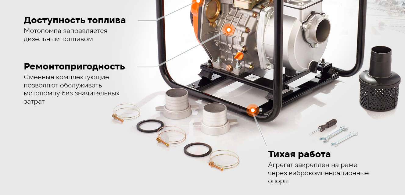 - Качественные и надежные мотопомпы среднего ценового диапазона, что делает их доступными в любой ситуации