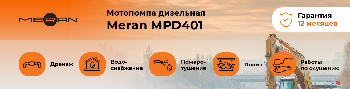 Мотопомпы MERAN являются надежным профессиональным оборудование и обеспечивают длительную и безотказную работу. Они успешно справляются с перекачкой воды различной степени загрязнения, что подтверждает их высокое качество. Область применения: дренаж, водоснабжение, пожаротушение, полив, осушение болот и котлованов.
