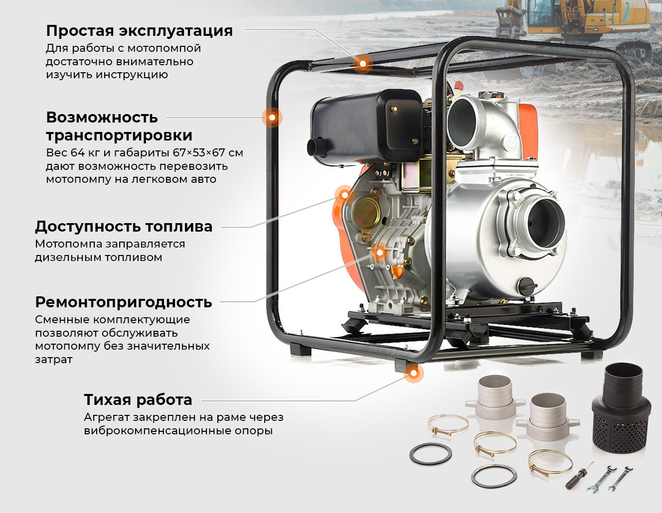 - Качественные и надежные мотопомпы среднего ценового диапазона, что делает их доступными в любой ситуации.