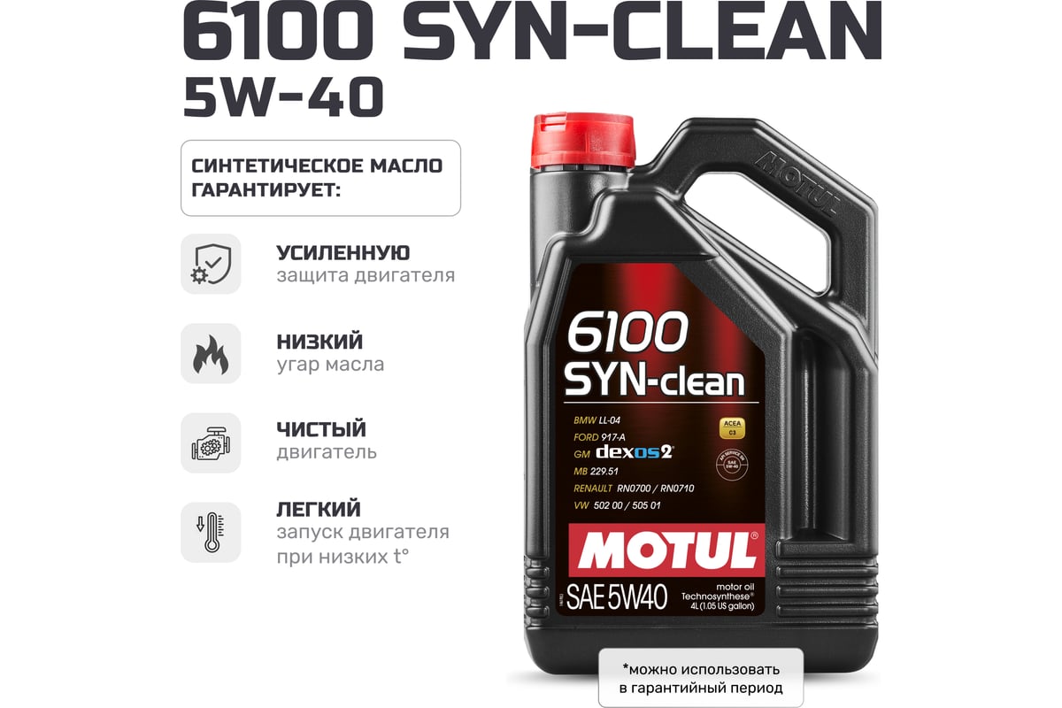 Моторное масло 6100 SYN-CLEAN 5W30 4x4л MOTUL 112134