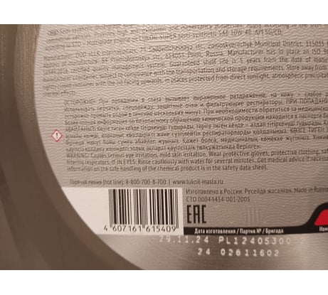 Технические характеристики масла Лукойл СУПЕР SAE 10W-40, API SG/CD 19191