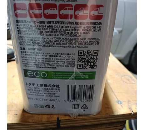 на дне банки нет следов конвейерной ленты. Шов на банке такой как пишут, что типа поддельная банка. ХЗ, не знаю. В Лачетти 5W30 Тотачи работает нормально. На банке пишут Япония. В наклеенной книжице на 2_й странице написано, поставщик в РФ, Тайвань.