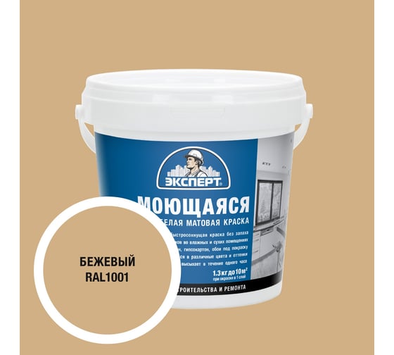Краска моющаяся ЭКСПЕРТ цвет Бежеый 1,3 кг 34832 применяется для окраски стен и потолков в кухнях, ванных комнатах. Идеальна для структурных и стеклообоев. Обладает высокой степенью белизны и укрывистости. Очень хорошая стойкость к влажному истиранию. Очень экономичная в применении. Наносится на бетонные и оштукатуренные поверхности, гипсовые и гипсокартонные плиты, структурные и стеклообои.