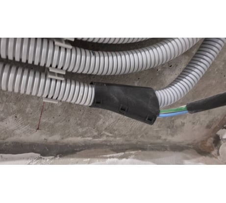 Использовал для разветвления провода 5х1.5 на два 3х1.5 с общей массой. Удалось засунуть соединение в эту муфту (обжимал прессом втулки, которые отрезались по 10мм для экономии места). На фото отсутствует гофра 16мм для одного провода, т.к. с длиной ещё не определился. Гофра на фото - 20мм, фиксируется хорошо.