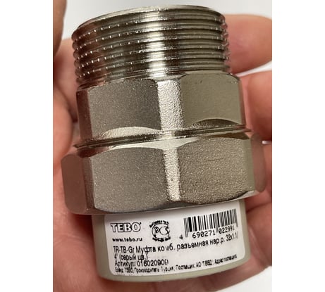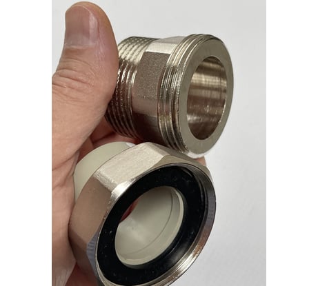 Комбинированные разъемные полипропиленовые фитинги имеют накидную гайку и резьбовую втулку из латуни марки CW617N с никелированным покрытием и служат для получения разъемного соединения. На резьбовой части фитинга имеется шестигранник, за который муфта удерживается при затяжке. Герметичность разъемного соединения достигается благодаря плоскому уплотнительному кольцу из EPDM.