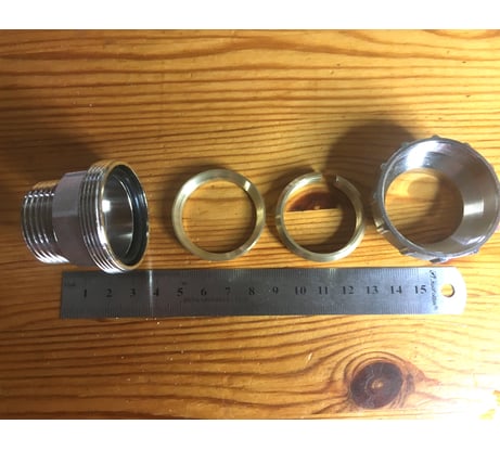 Вырвало трубу из этого фитинга вкрученного в насос. На прижимном кольце/гайке - внутренняя поверхность царапает трубу. Пришлось дорабатывать "рашпилем"...