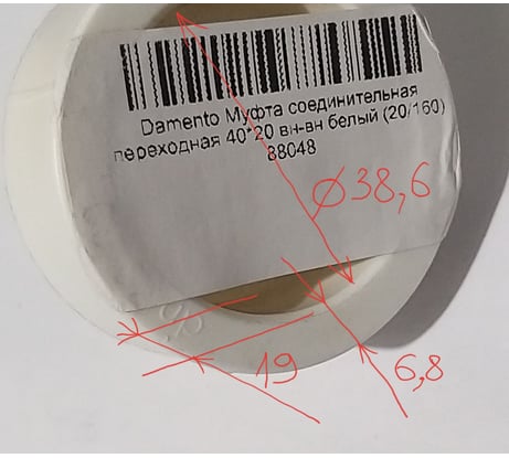 Муфта соединительная переходная Damento 40х20, вн-вн, белый 88048