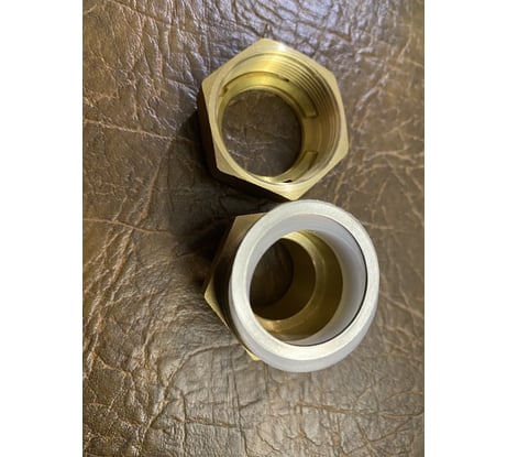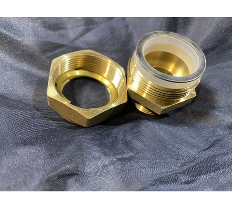 латунь, внешне без изъянов, легкий монтаж, давление 4атм. держит