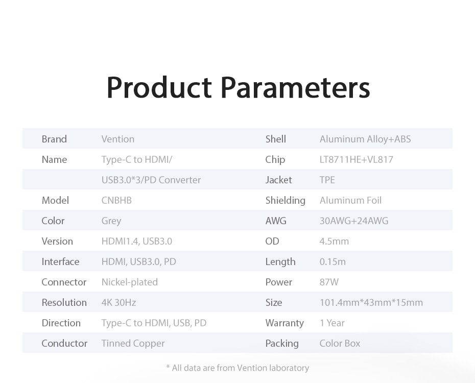 Мультифункциональный хаб VENTION USB Type C 5 в 1, шт. CNBHB