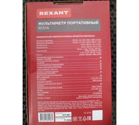 Портативный цифровой мультиметр R131A REXANT представляет собой современное устройство, которое позволяет измерить переменный ток, произвести тест батарей и аккумуляторов до 12В, определить фазу и нейтраль. Прибор имеет автоматический выбор диапазонов измерений и оснащен бесконтактным детектором напряжения NCV.