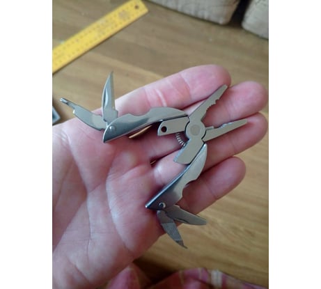 Ставлю 5 заслуженных звёзд за исполнение и соотношение цена/качество. За 3 доллара альтернатив нет, но и чудес за такую стоимость не ждите. Мультитул выполнен из нержавеющей инструментальной стали среднего качества. Все шарниры исполнены в виде обычных заклёпок, соответственно, со временем при частом использовании всё содержимое начнёт самопроизвольно гулять туда-сюда. Я его повесил в качестве брелка на ключи на всякий случай. Весит почти ничего, а нож, пассатижи и ковырялка для ногтей будут всегда кстати. Рекомендую 150%
