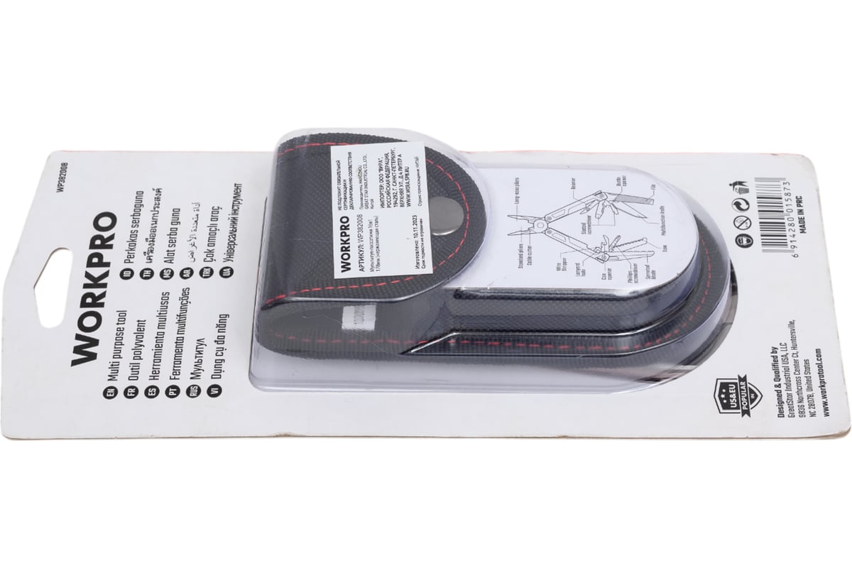 Мультитул-пассатижи 16-в-1 WP382008 Workpro прочная конструкция из нержавеющей стали.