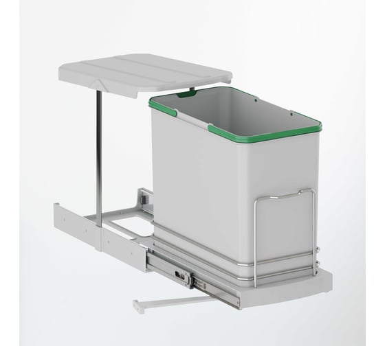 - Ведро может выдвигаться вручную (за ручку спереди) при минимальном размере фасада от 350 мм.