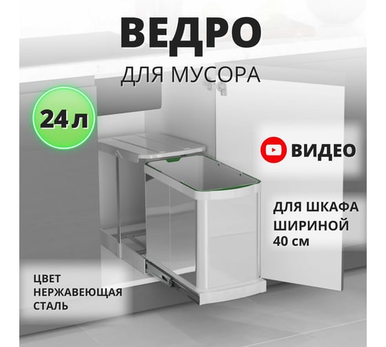 - Ведро укомплектовано: шариковыми направляющими полного выдвижения (без доводчика).