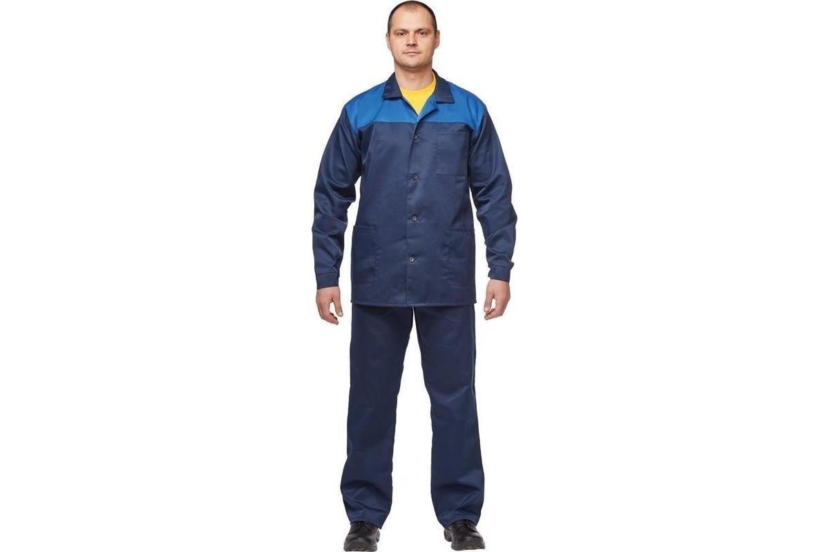 Мужской костюм ООО Комус л16-КБР, синий/васильковый, р.64-66, рост 182-188 684795 подходит для работы на любом производстве или обслуживающем предприятии.
