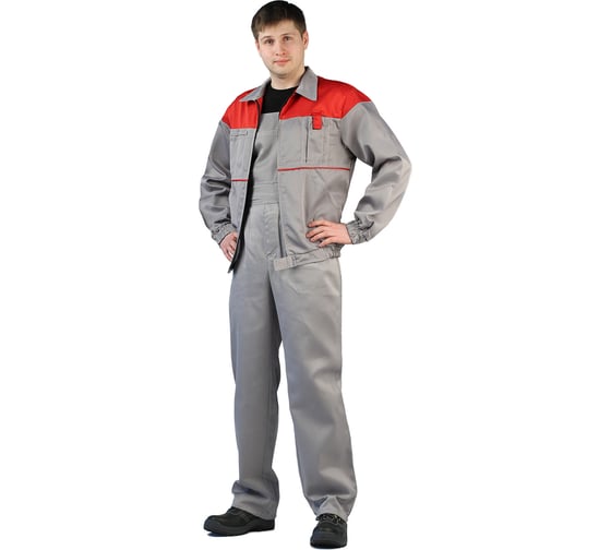 Мужской костюм URSUS Рейнир светло-серый/красный, размер 48-50, рост 170-176 КОС591-321 защищает работника от производственных загрязнений.