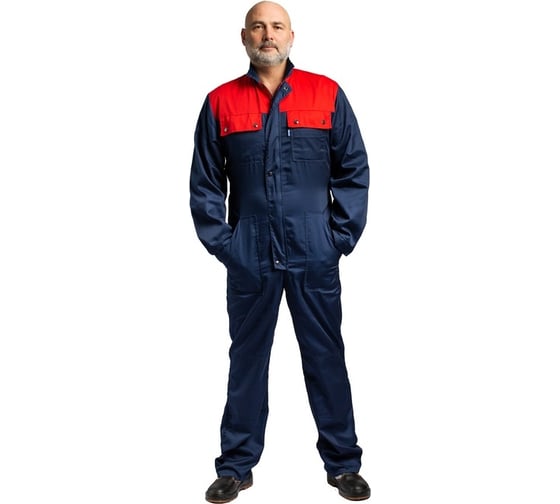 Мужской летний комбинезон Ф синий/красный, р.112, рост 182 011-08-32 защищает от общепромышленных загрязнений и механических воздействий.