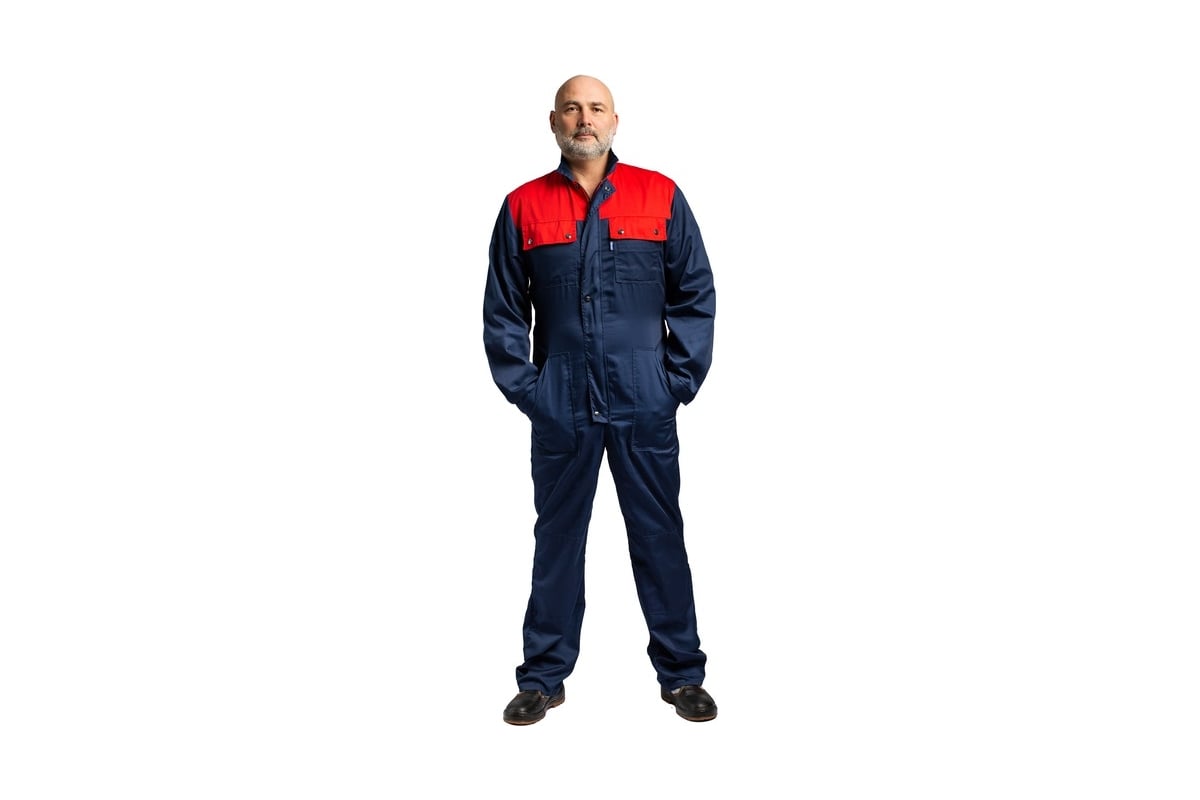 Мужской летний комбинезон Ф синий/красный, р. 120, рост 170 011-08-39 защищает от общепромышленных загрязнений и механических воздействий.