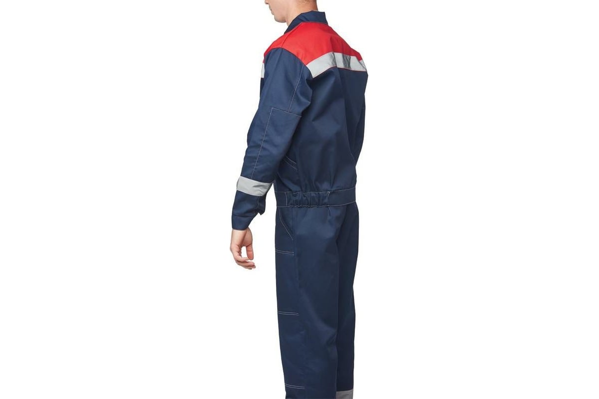 Мужской летний костюм ООО Комус л20-КБР синий/красный, размер 44-46, рост 158-164 829790 изготовлен из смесовой ткани плотностью 210 г/кв.м, которая отличается устойчивостью к разрывам.