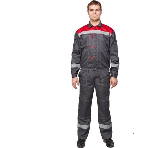 Мужской летний костюм ООО Комус л20-КПК серый/красный размер 48-50, рост 170-176 829804 защищает от общих производственных загрязнений.