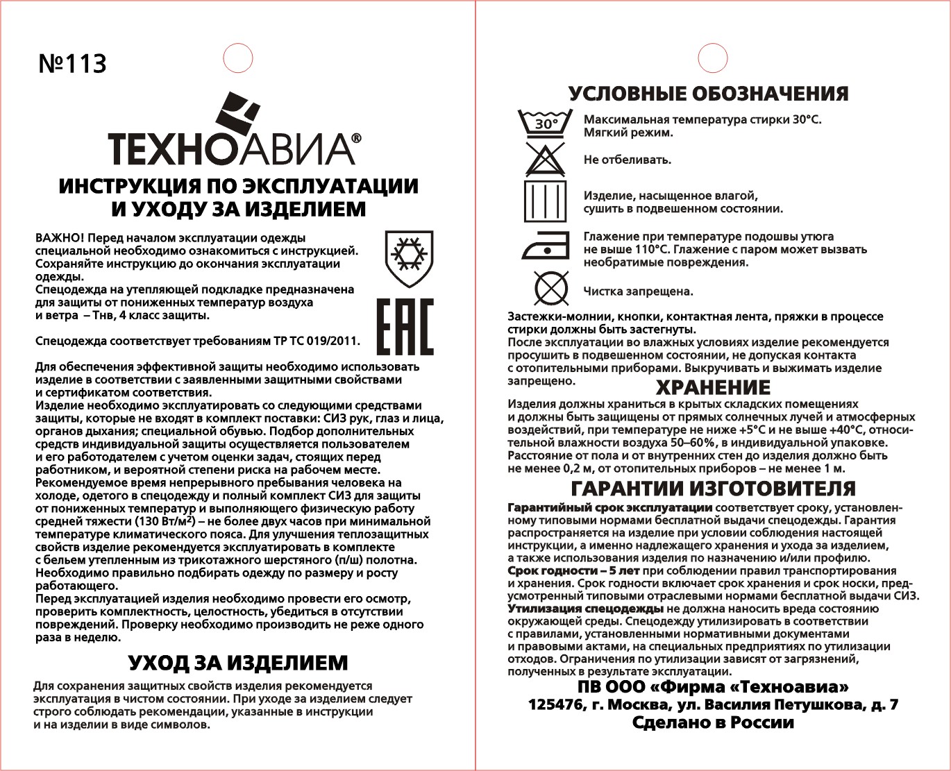 Технические характеристики зимнего мужского полукомбинезона Техноавиа Скаймастер 120-124/170-176 2210P