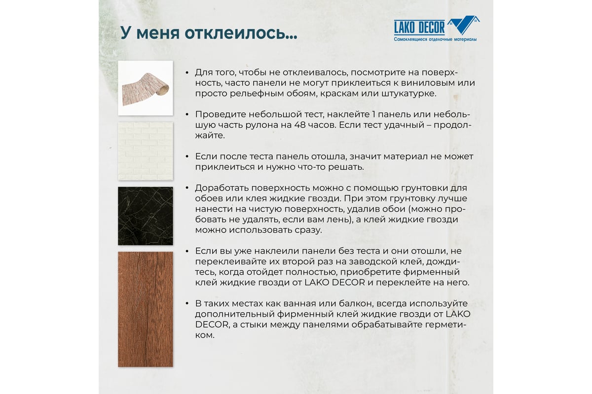 Мягкая самоклеящаяся 3D панель LAKO позволяет легко и быстро сделать косметический ремонт своими руками. Она подходит для декора стен, потолков и зонирования пространства, надёжно маскируют небольшие дефекты поверхностей.
