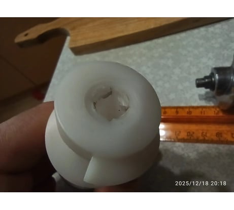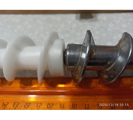 На фото видно, что квадрат на ведущем металлическом шнеке заходит в пластиковый шнек всего на 3 -4 мм. Соответственно грани квадрата в пластике просто сорвало.