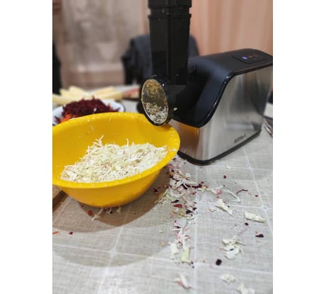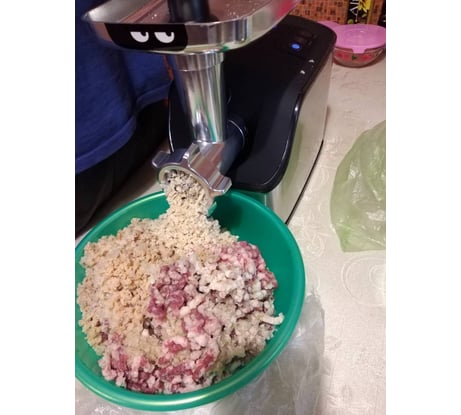 Мясорубка просто огонь! 🌟😍 Быстро покрутили мясо. Мясорубка без никаких запахов и не нагревается. Ещё есть кнопка "медленно" удобно для использования. Насадок много на любой твой вкус. Классно что есть и овощерезка. И цена приемливая! Спасибо производителю! ❣️❣️❣️