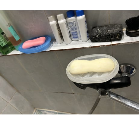 Уже вторую такую беру. Первую взял голубую, а сейчас голубой не было только белая. Взял белую. Голубая выглядет лучше. С этими мыльницами мыло хватает на гораздо дольше. Вода уходит в отсек под мыльницей, а потом ты эту мыльница разбираешь ив воду вылеваешь. Плюс ещё в том что мыльнеца пластмасовая, и если уронить, кафель не разобъёт. Старую мыльница керамическую отнёс на кухню, использую под железяку для мытья сковородок.