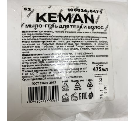 Отзывы о мыле-геле для тела и волос Keman картридж S2, 475 мл арт 100026-0475 25629