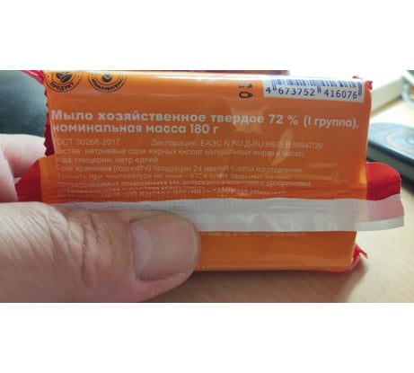 Протестировала на светлых носках, которые обычными способами уже от темных мест не отстирывались. Намылила как следует этим мылом, свернула носки рулончиками, чтобы не сохли и оставила на ночь.Утром немного прополоскала, и не заморачиваясь, прям постирала мылом, которое в носках еще осталось после полоскания. Ну что я могу сказать, носки почти как новые. Но есть нюанс. Мыло дюже вонюченькое, надо отполаскивать и после ручной стирки, и если в машинку класть потом собрались, провоняет все остальное в машинке. Пахнет оно, конечно, просто как хозяйственное мыло, но запах очень концентрированный. Если есть результат (а он вроде есть), то запах пережить можно. Наверняка с локальными пятнами также отлично справляется. Едкий натр в составе, то бишь каустическая сода. Руки не разъело, все замечательно. Зачем покупать дорогие пятновыводители, когда есть мыло по 45 руб. Я вообще сторонник простых решений, ищу их, они всегда есть. Остальное маркетинг для хомячков.