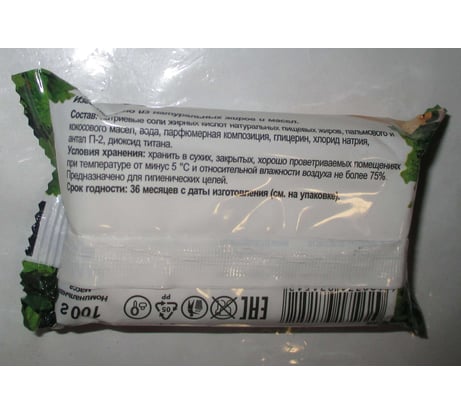 Белое мыло с несильным ароматом нечто среднее между банным веником и хвоей. Измеренная масса одного бруска составила 97 гр. Мылится хорошо, не раскисает, мочалку намыливает отлично. Форма бруска ближе к прямоугольной, обычная. В целом подходит для мытья рук, ванны, бани и душа.
