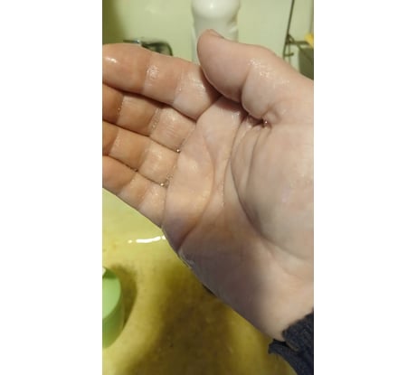 Густое и мылкое. Малое колличество смывает обе руки. Нет красителей. Приятный и не резкий запах мыла.