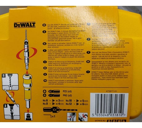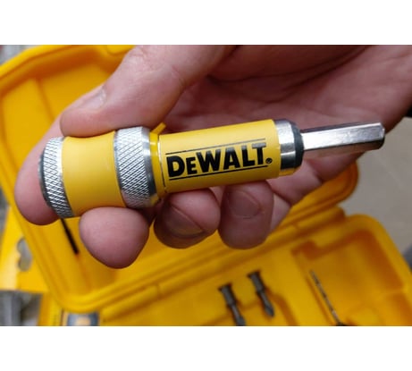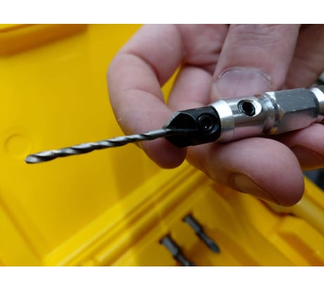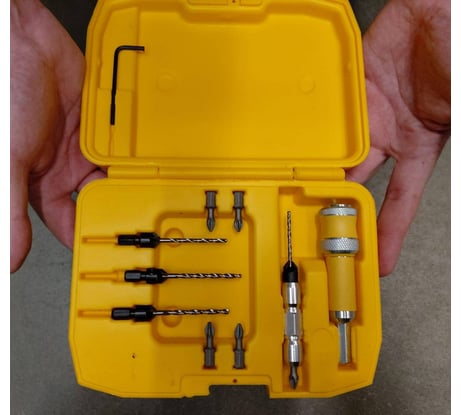 Удобно, когда есть несколько инструментов и их можно быстро заменить, не переставляя сверла. Но у меня шуруповерт один, поэтому я решил немного упростить себе жизнь и приобрести сразу набор для сверления и зенкования древесины с адаптером. На выходе одна насадка, позволяющая просверлить нужное отверстие, прозенковать конус под головку винта и завинтить его. Набор сверл вместе с зенковкой DeWalt DT 7612 в яркой пластиковой жёлтой упаковке не затеряется даже у самого нерасторопного мастера. Разговоров про нефункциональность использования места хранения в кейсе слагаются легенды, ну а впрочем не напрасно. Можно было бы оставить немного места под другие изделия, не из набора и считайте, все всегда при тебе. Корпус шероховатый, не скользит в руках, 185 на 140 на 45мм среднего размера. Закинул в ящик с инструментами и быстро нашел и забыть про них сложно. Плотно закрывается на черный замок так что ничего не потерять. В набор входят 4 сверла, 4 зенкера, 4 биты, держатель и шестигранник (он расположен на крышке кейса). Адаптер Flipe&Drive состоит и двух частей: один это двусторонний механизм, с одной стороны бита, с другой сверло+зенкер. Второй это сам адаптер, который закрепляет эту державку, надо лишь потянуть муфту в сторону патрона. Секунда и вместо сверла - бита. Диаметр у сверл разный (2,4 3,0 3,2 2,9), а вот у зенкеров один 9,5мм на стандартные головки саморезов. 6 для винтов 3мм, 8-4мм, 10-5мм, 12-6мм. Биты Pz2 и PH2. Дальше я смотрю по количеству работы, если надо сверлить много больше 50 отверстий, держатель не использую. Все же с ним длина от сверла до патрона увеличенная и можно сломать свою оснастку. А вот если работ мало, надо быстренько сделать проем под саморез, биту под сверло с помощью адаптера меняются молниеносно. Длину сверла можно регулировать с помощью потайных винтов сбоку. Если сверло сломается, в зенкере его можно заменить без проблем - это очень экономично. Набором пользовался для фанеры, ДСП, даже алюминий, для ремонта и строительства по дому отличный вариант. Для профработ уже нужен другой инструмент и менять шурики наверно проще, но у кого их более чем один. Зенкуется чётко без "заусенцев" на дереве. Такой набор покупать иногда даже выгоднее, чем все по отдельности. https://youtu.be/8J9_EH1Nm9Y