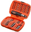 Набор 45 шт. BLACK&DECKER A 7039 - универсальный комплект, упакованный в удобный чемодан и прозрачный блистер. Он может стать отличным подарком. Оснащен реверсивной отверткой с храповиком, который позволяет выполнять закручивание крепежа, не отрывая руки от рукоятки. В наборе большое количество насадок, что делает возможной работу различного рода.