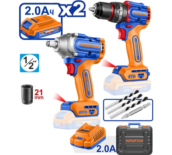 Набор аккумуляторного инструмента WADFOW 20В 4 WCK20275
