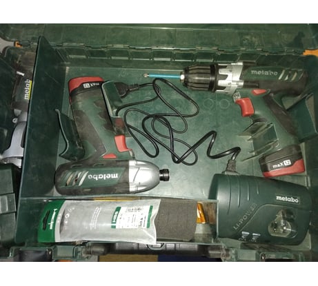 Набор: аккумуляторный шуруповерт Metabo PowerMaxx 12 + аккумуляторный ударный гайковерт PowerImpact + фонарь PowerLED 685018000 - это те инструменты, которые прекрасно подойдут для работ с крепежами и сверления отверстий. Они крайне удобны в пользовании - рукоятки удобной формы снабжены мягкими прорезиненными вставками для удобного и надежного хвата инструмента. Корпусы изготовлены их ударопрочного пластика, что обеспечивает надежную защиту от механических повреждений. Комплект поставляется в кейсе.