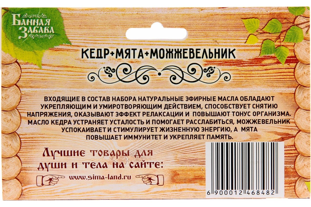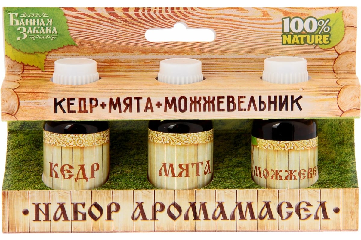 Набор аромамасел Банная забава Кедр, мята, можжевельник 15 мл, 3 шт. 1246848 подходит для ароматизации воздуха в бане и сауне.