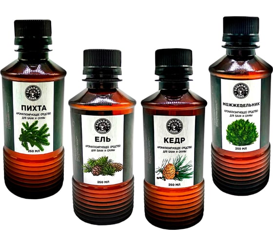 Набор ароматизаторов Бацькина баня 250 мл Сильный иммунитет 4 шт Пихта Ель Кедр Можжевельник для бани и сауны 17-4-250-набор-хвоя-ВИ