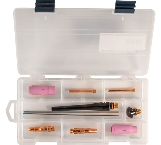 Полный набор расходных материалов для работы с горелками TIG17-18-26. Оснастка для аргонодуговой сварки, обычно не включена в штатную комплектацию горелок. Набор закрывает все потребности сварщика для начала работы с TIG сваркой.