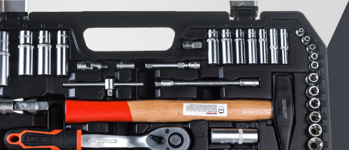 Торцевые головки основных типоразмеров помогают справиться с любым крепежом. Переходники, удлинители, воротки и карданные шарниры дают возможность подлезть к труднодоступным местам, например, при съеме маховика оппозита. Дополнительные инструменты, такие как отвертки, длинногубцы, ножницы и пассатижи, расширяют сферу применения набора.