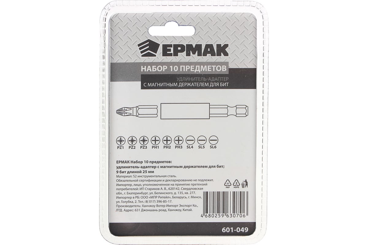 Набор бит (9 шт; 25 мм) удлинитель-адаптер с магнитным держателем ЕРМАК 601-049