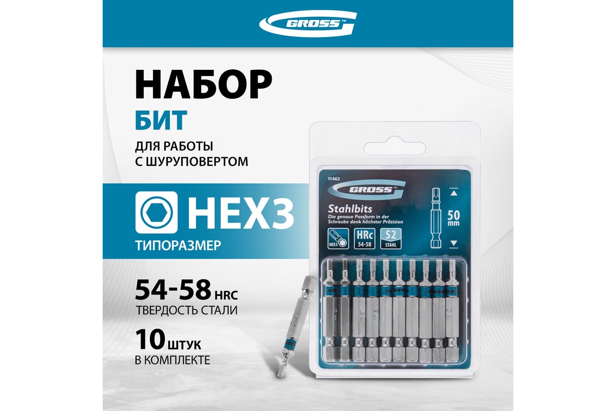 Вопросы и ответы о наборе бит GROSS HEX 3х50, сталь S2 11462
