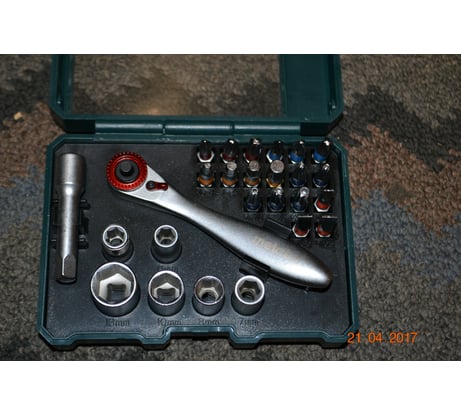 Искал маленький набор с минимальным, и в то же время самым ходовым, набором бит и головок (жаль на 14 нет). В принципе все нравится, не считая цены и трещетка хлипенькая, боюсь сильнее затянуть что-либо и все