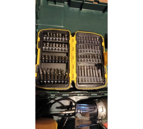Кейс отличный, поместился в стандартный кейс шуруповерта Метабо. Бит достаточное количество, удобно доставать биты так планки поворотные. Жирный минус ➖ кривой цанговый битодеожатель. Использовать его нельзя.