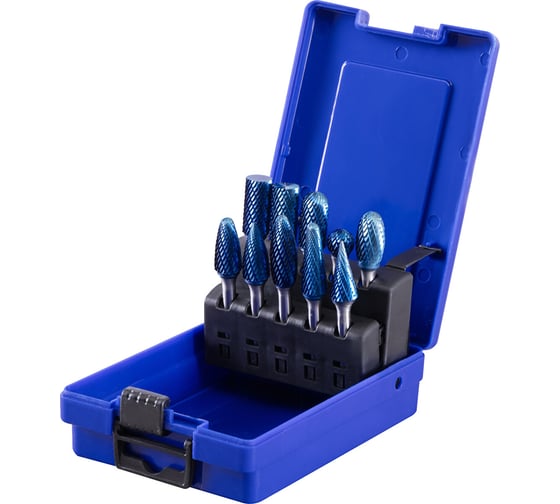 Набор бор-фрез LENZ по металлу твердосплавных с покрытием, 10 шт LZBS 025 C3