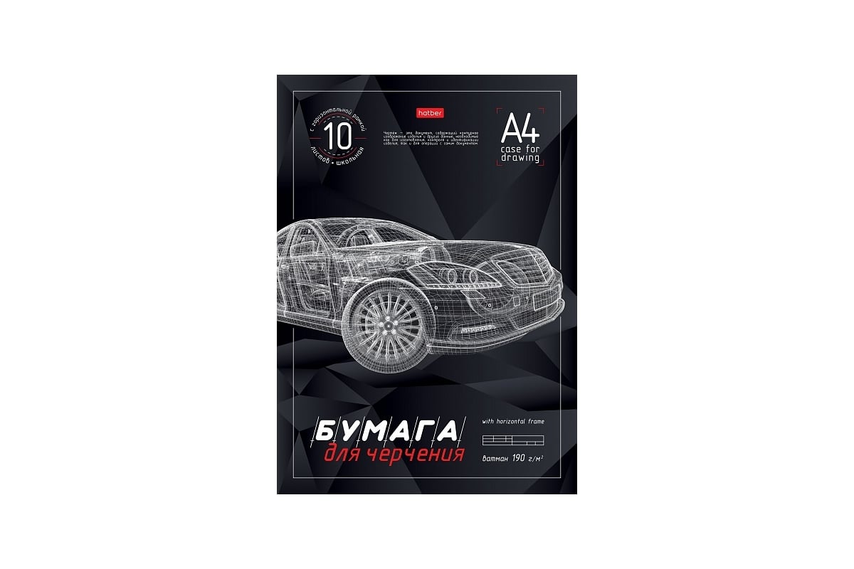 Набор бумаги для черчения Hatber 10л, А4, 190г/кв.м, школьная с горизонтальной рамкой, упак., 20 шт 060462