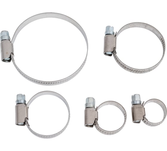 Набор червячных хомутов из нержавеющей стали, КРЕПСТАЛЬ. 20 шт. Набор представлен из часто используемых и необходимых размеров. Предназначен для герметичного соединения эластичных труб, шлангов, патрубков.