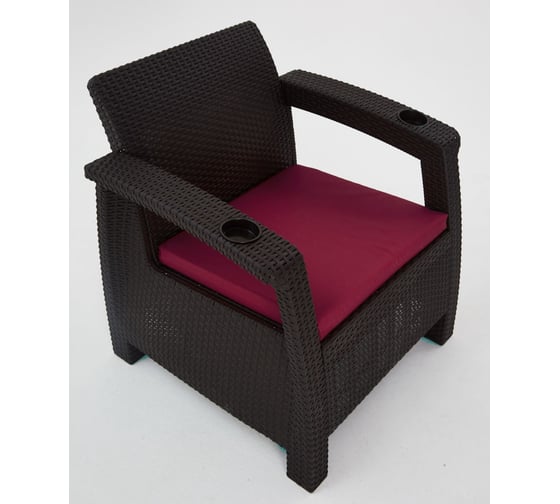 Набор дачный садовой мебели WORKY HomlyGreen 2 кресла и обеденный стол 94×94×74 см, мокко, бордовые подушки ARD259244